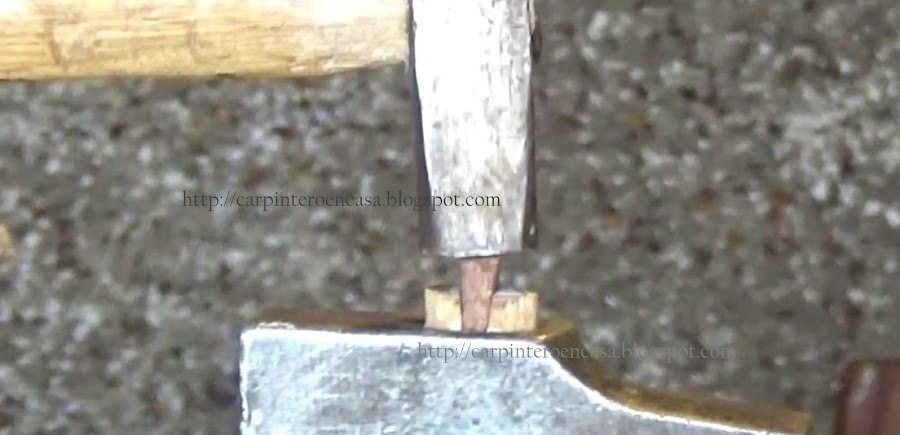 Luego, por el mismo sitio donde se encuentra la vieja cuña, cortamos para que ingrese la nueva, que será mas gruesa, hecha de cualquier tipo de madera dura.