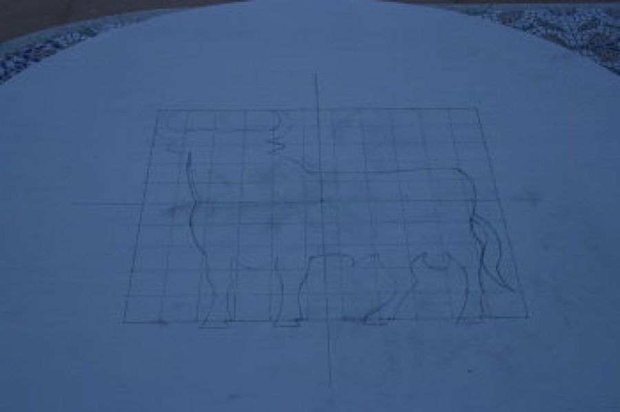 Para ello, podemos pintar la tapa de blanco, para poder elaborar el esbozo del dibujo. Como vemos en la imagen, con una cuadrícula conseguiremos un dibujo más centrado y proporcionado.