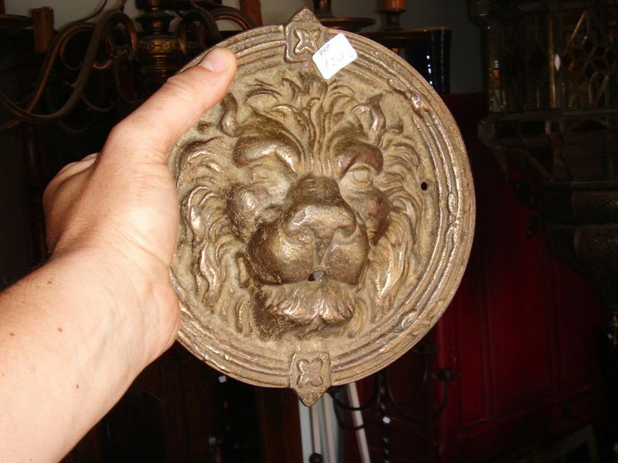 Los surtidores que brotan de una pared lisa suelen adornarse con cabezas de animales, como este pequeño león que encontramos en un anticuario.