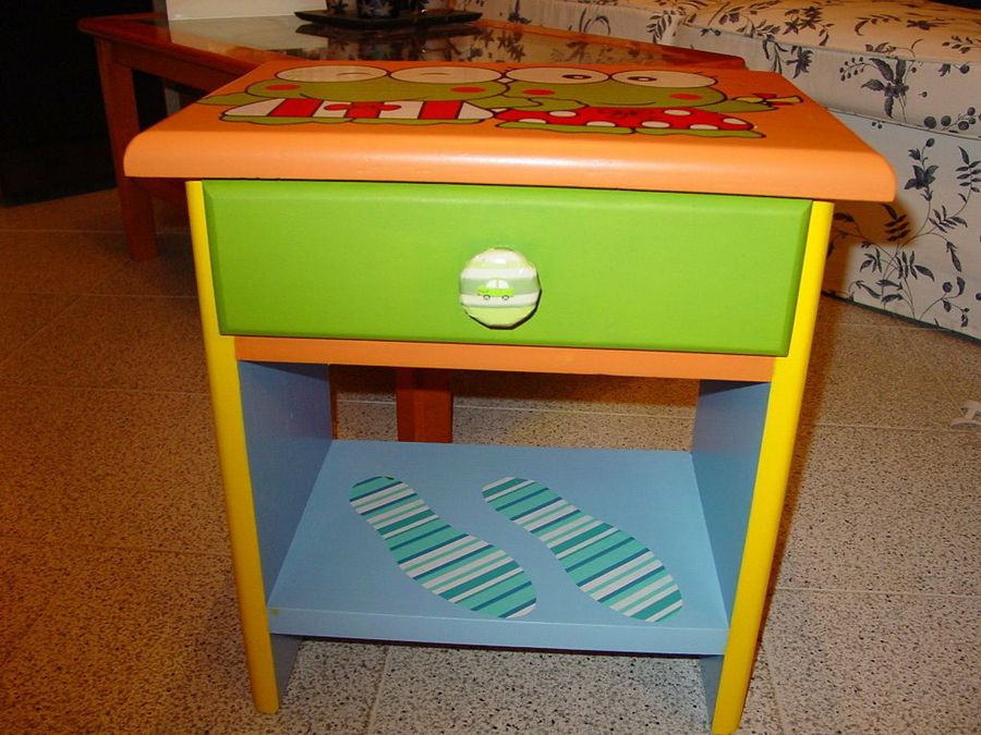 Como sugerencia de regalo para una habitación infantil, nada mejor que la aportación de Tizana. Pintó en vivos colores una mesita para el cuarto de su nieto, y naturalmente el éxito fue apoteósico.