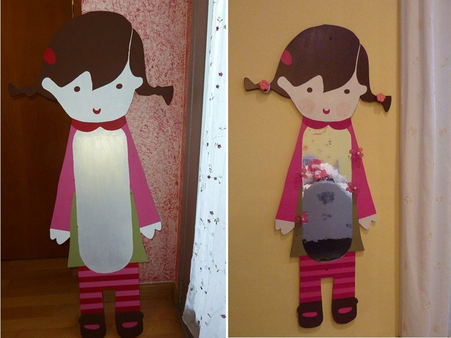 Yoymisideas vio en un catálogo un perchero infantil que le pareció original y precioso. Y como resultaba “algo carillo”, decidió hacerlo ella misma. Para ello empleó el tablero DM; vemos la pieza durante la realización y ya colgada en su sitio. “La figura quedará muy bien si hay un friso y la apoyamos sobre el borde”, señala la artista.