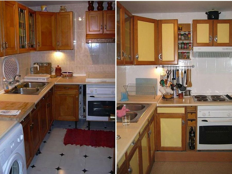 Finalmente, vemos la cocina de Gatagris antes y después. “La pinté entera (dos manos) con dos botes, creo que eran más o menos de kilo y me costaron unos 8 euros cada uno. Los azulejos originales además de feos eran defectuosos, y ahora la cocina de blanco queda mucho más luminosa”. Gatagris usó una pintura epoxi, muy resistente, que ya había utilizado en el baño con resultados excelentes. “Pintar fue rapidito, tardé hora y media por cada mano. Eso sí, en quitar todos los accesorios y proteger los muebles, los grifos, el suelo y el calentador, tardé bastantes horas. En una cocina vacía sería facilísimo, basta con tapar bien el suelo, así que animaos si no os gustan vuestros azulejos”.
