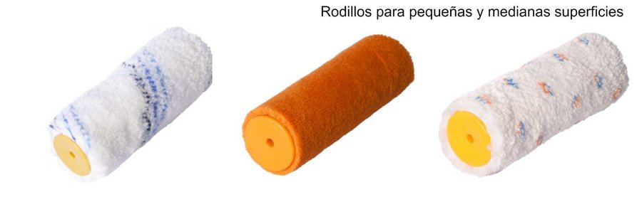 - De fibras sintéticas: depende del tipo de fibra (microfibra, policrílico...), pero podemos encontrar modelos idóneos para fachadas, revestimientos, paredes interiores y exteriores tanto lisas como irregulares, suelos, pladur, esmaltes al agua...