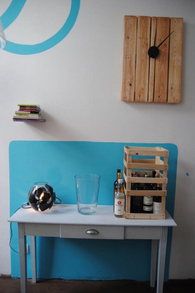 4 Con palets. Por supuesto, no podía faltar nuestro material estrella. Así, combinando diferentes tablones hacemos la base, sobre la que podremos colocar los números y el mecanismo.