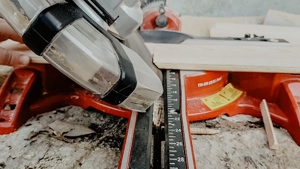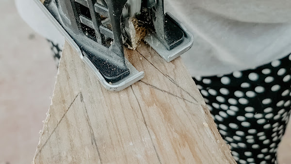 Para este último DIY elegiremos la madera más ancha del palet y la cortaremos según las medidas de la plantilla (descargar aquí), y cortaremos los lados a 20º.