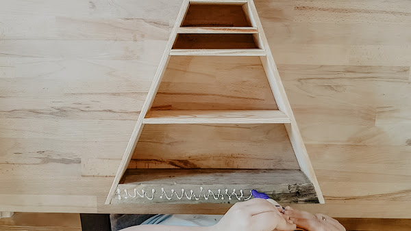 Una vez pintado y seco, le daremos la vuelta y clavaremos los soportes para colgar.