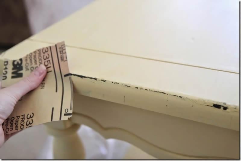 4- Para darle un toque más antiguo lija alguna zona de forma errática.