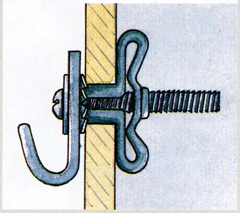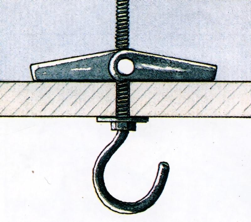 Para paredes de ladrillo hueco o techo de yeso se pueden utilizar dos tipos de enganches. Unos están provistos de una pieza articulada que, al llegar a la parte hueca, bascula y queda sujeta contra el interior de la pared o el techo. Los otros son tacos con dos brazos, que se abren en forma de paraguas cuando se atornillan. Ambos reparten el peso del objeto a fijar.