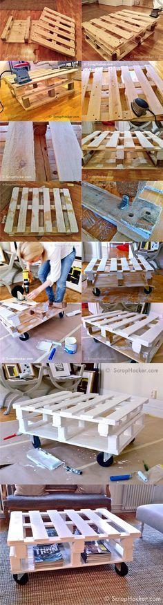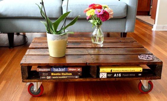Reciclar palets es una tarea muy sencilla cuando se tiene estas ideas. Si necesitas una mesita que se pueda reubicar fácilmente, ponerle ruedas es lo mejor. Solo tienes que comprar 4 ruedas y manos a la obra.