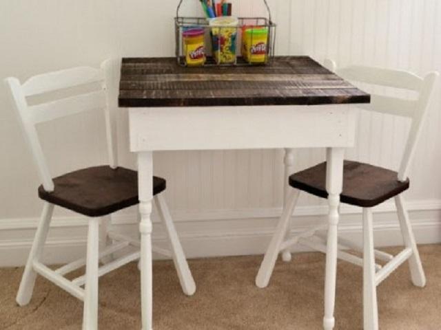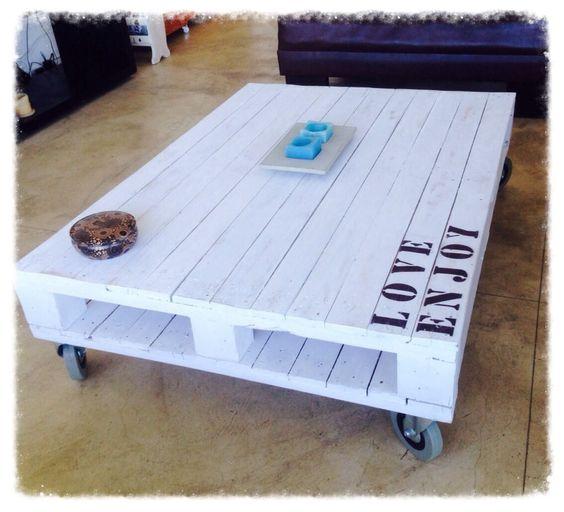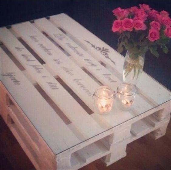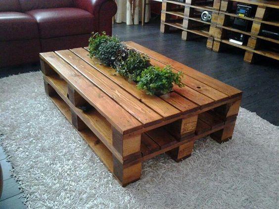 Los centros de mesas se hacen mínimo con un palet o tarima que esté en buenas condiciones. Siempre has tu bricolaje usando los colores que tengas a mano, papel pegado o sencillamente barniz. En algunos países se les llama mesas ratonas.