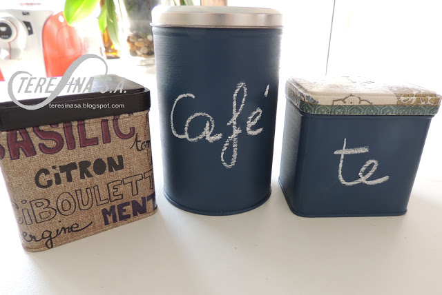 El blog Teresinasa, nos enseña, cómo recilar unos botes de te y café pintándolos con Chalk Paint, y con servilletas. Muy fácil y muy decorativo.
