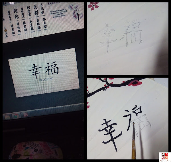 Por último y en el lateral que quedaba libre dibujé a mano alzada también la palabras felicidad que busqué en internet, seguro que si viene un entendido en caligrafía china me dice que esas dos letras no están bien pero...yo creo que se pueden entender no?