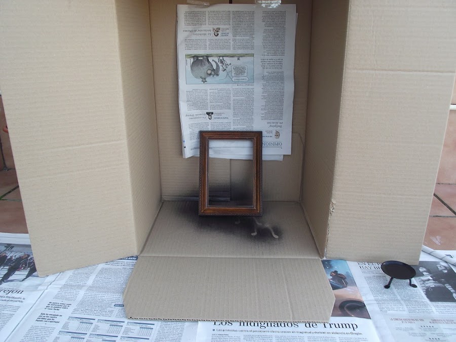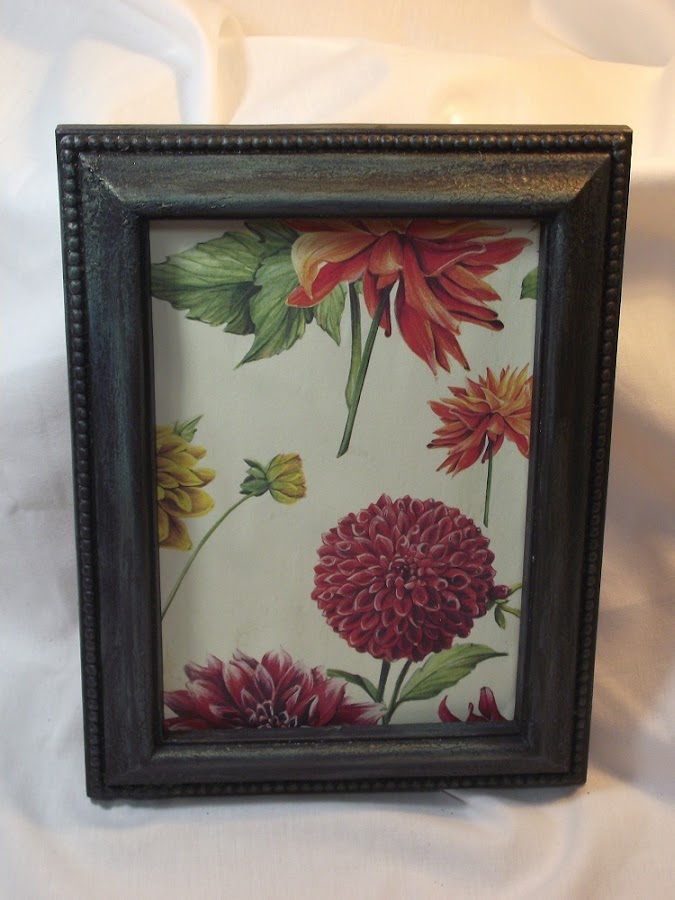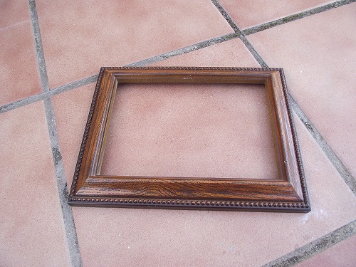 Por último recuperé un marco de fotos, que estaba en desuso porque es ¡¡horroroso!!. ¿No os pasa que algunas veces no entendéis cómo habéis podido comprar algo tan, tan feo?. Pues éste es uno de esos, de plástico imitando la madera. Todavía no entiendo cómo no lo he tirado antes, pero al final va a servir para otro experimento con la pintura de forja.