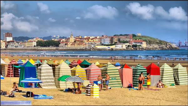 Casetas de lona en la playa de San Lorenzo, Gijón. Fuente: jasp--ast.blogspot.com