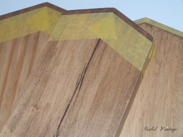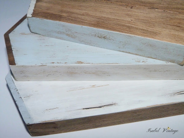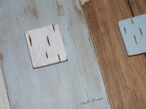 Después he hecho algunos surcos con un punzón y las he pintado alternando blanco y azul con la madera oscurecida, desgastando con lija una vez seca la pintura.
