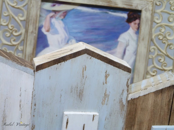Con lo fácil que hubiera sido quitarles unos centímetros, las arrinconé momentáneamente, de lo cual ahora me alegro muchísimo, porque de pronto se me ocurrió hacer un adorno muy playero y empecé a ver las casitas con otros ojos... de hecho, ya no las veía como casitas, sino como casetas, que es muy diferente jajaja.