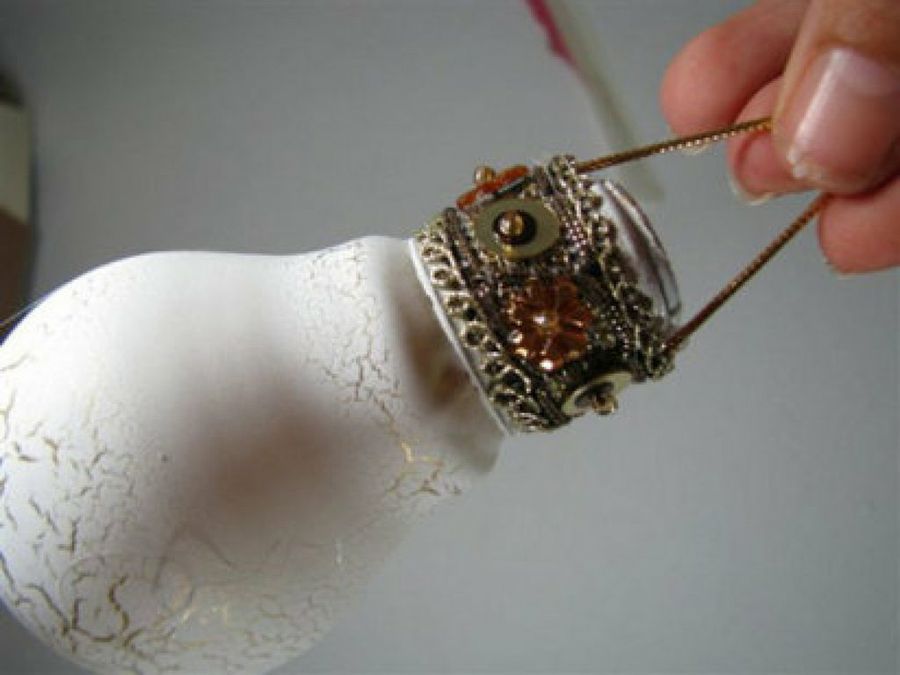 Reciclar bombillas es también una estupenda opción. Podemos emplear pintura de spray con la que reduciremos tiempo y esfuerzo. Incluso podemos añadir efectos como el craquelado, como vemos en el ejemplo de la página Crafts by Amanda.