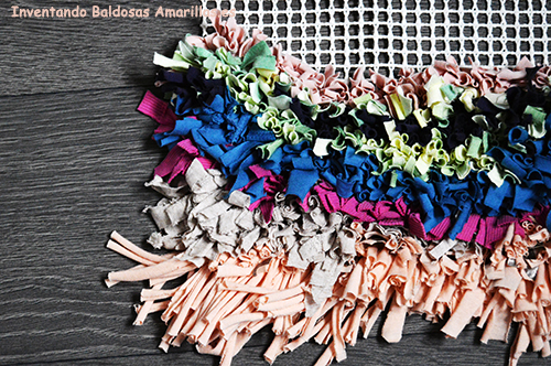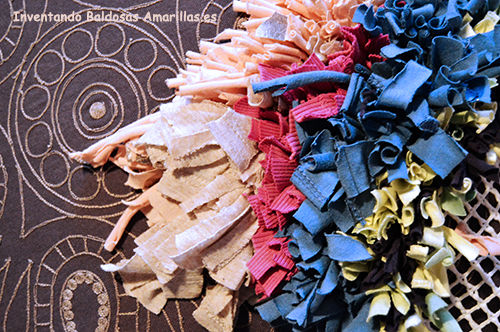 Evidentemente, vamos a necesitar más ropa para reciclar según sean nuestros flecos de largos. Yo he ido combinando tanto colores como dimensiones.
