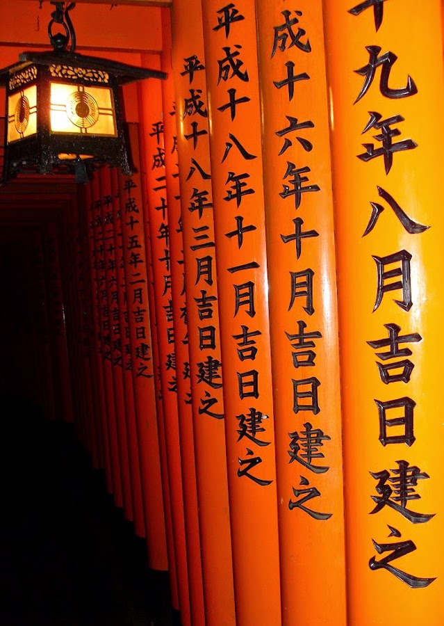 En Fushimi Inari miles de Torii marcan el camino. Es el santuario sintoísta más importante de Japón, aunque no es un edificio sino una montaña. Estas puertas abarcan un sendero de varios kilómetros de longitud en cuyos recodos se esconden hasta 32.000 pequeños santuarios. Hay quien asegura que la colina alberga más de 100.000 de estos Torii de un electrizante color naranja. Para visitarlo hay que ir sin prisas, despacio, para poder perderse en una sinuosa senda que no sabemos a dónde nos conduce.