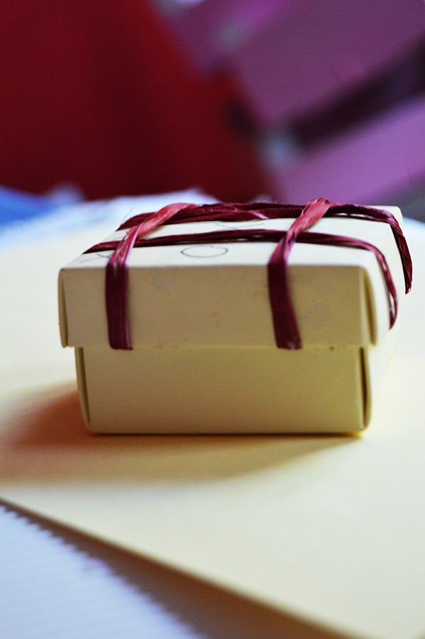 Reciclamos una cajita de recuerdo de boda para envolver un regalo y a la vez jugar un poco.