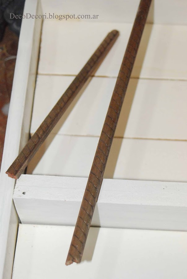 Tenía estas tiras que me vinieron bárbaro a modo de fondo y como complemento para reforzar aún más la estructura. Dos puestas de forma paralela al piso como estantes.
