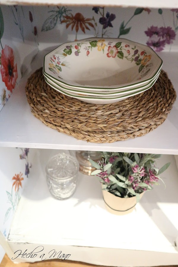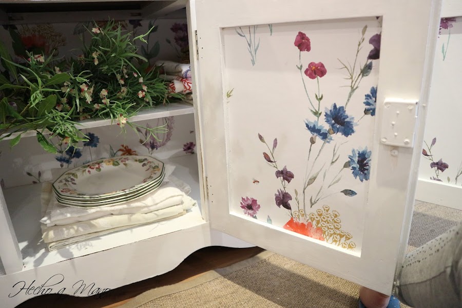 Lo que tuve meridianamente claro desde el principio es que quería el interior empapelado y cuando encontré este precioso papel, ya no hubo duda. Fue amor a primera vista y casi da penita tener que cerrarlo ¡aiiiinnnnsssss!.