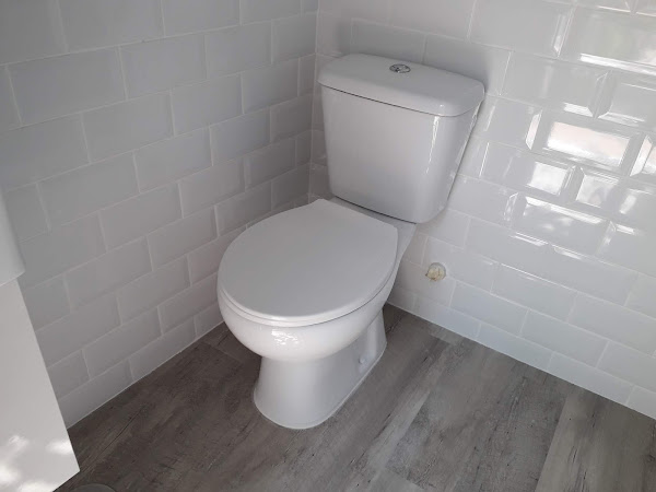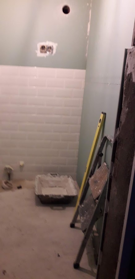 Terminado el suelo, colocado el zócalo en la pared de pladur y ahora toca sanitarios...