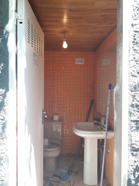 Para que lo que queriamos hacer en ese minusculo espacio nos diera para todo, había que cambiar el lavabo de sitio, justo al contrario de donde se ve, detrás de la puerta que encima no podia sacarse para tener mejor maniobravilidad, todo facilidades jajaja...
