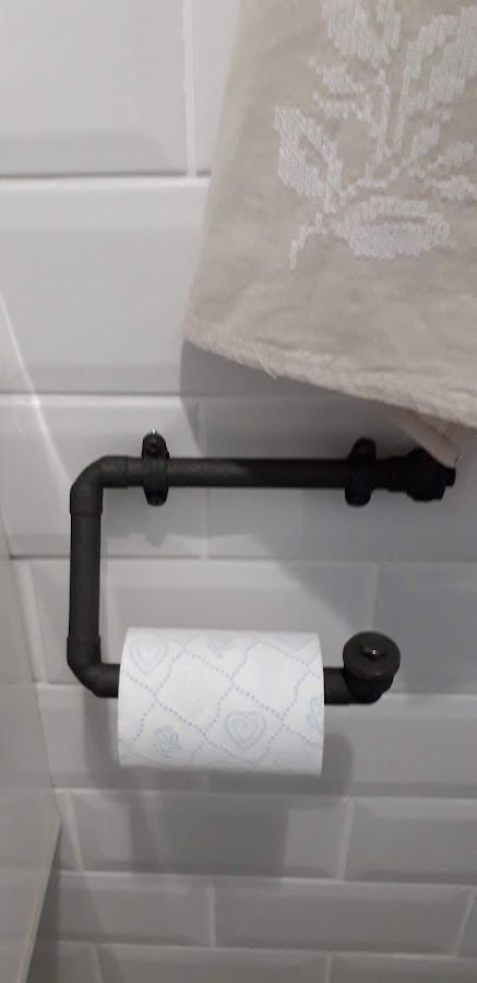 Mi soporte para el papel higiénico, quería algo especial y distinto pero no veía nada en tiendas que me molara, asi que busque en Pinterest otra vez y me gusto uno que vi, pero yo lo quería en negro, esta vez pintado a brocha con oxidon.