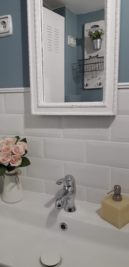El espejo ya lo tenía en la otra casa, un poco de lija, manita de blanco y lijar por aquí y por allá...