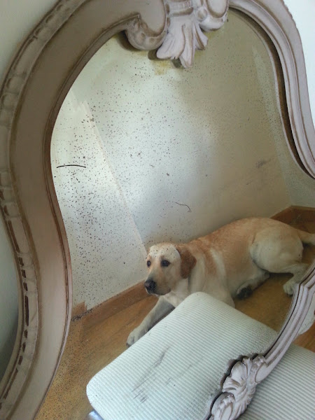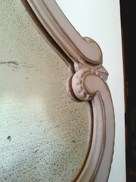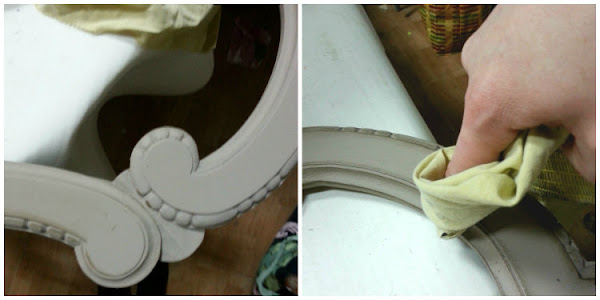 3. El acabado que se consigue con esta pintura es mate y perfectamente uniforme. Así me parecía que mi espejo iba a quedar bastante soso...Así que después de aplicarle una generosa capa de cera, utilicé la esquinita de un trapo untado en betún de Judea para marcar un poco los contornos.