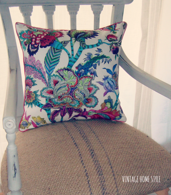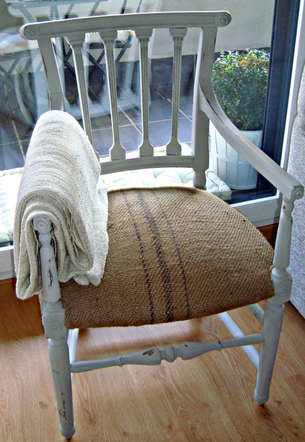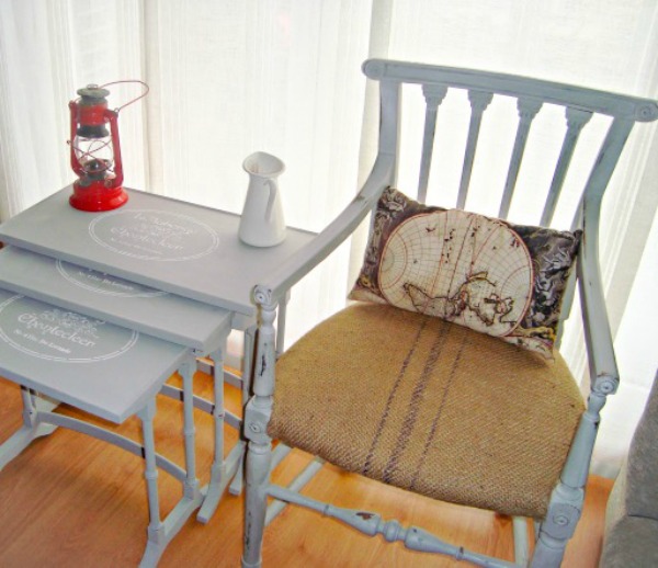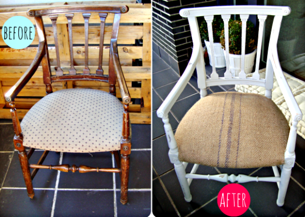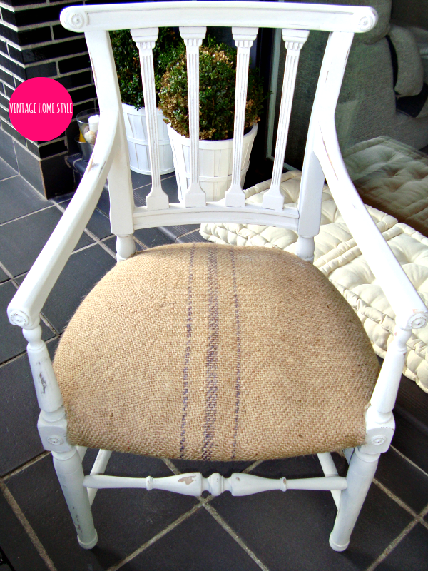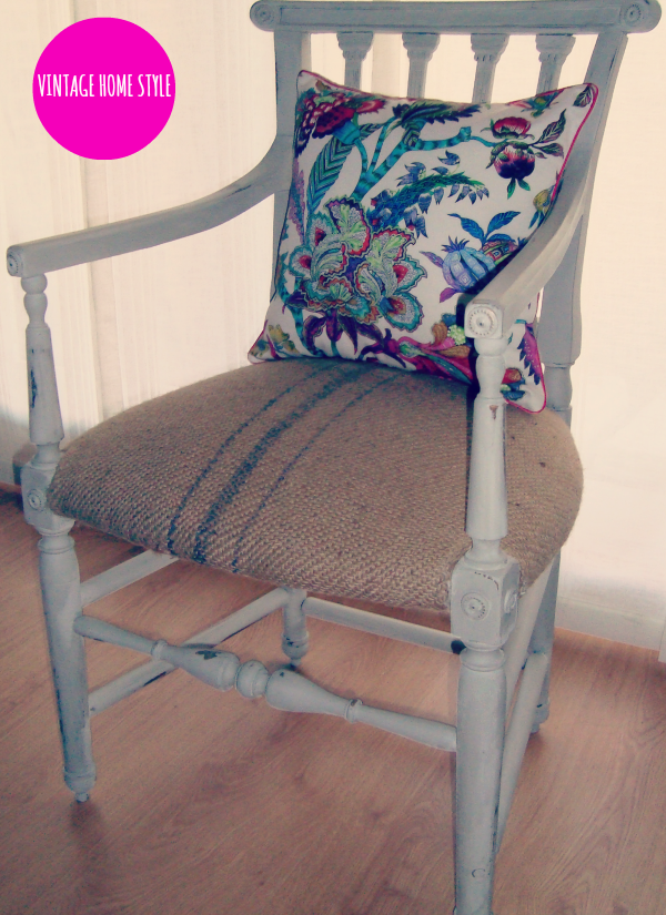 Conseguí transformarlo pintándolo en un gris muy claro de chalk paint, y decapándolo para aportarle ese estilo Shabby Chic que estaba buscando. Como guinda del pastel tapicé el sillón con una tela de saco consiguiendo el estilo cottage que tanto me gusta.