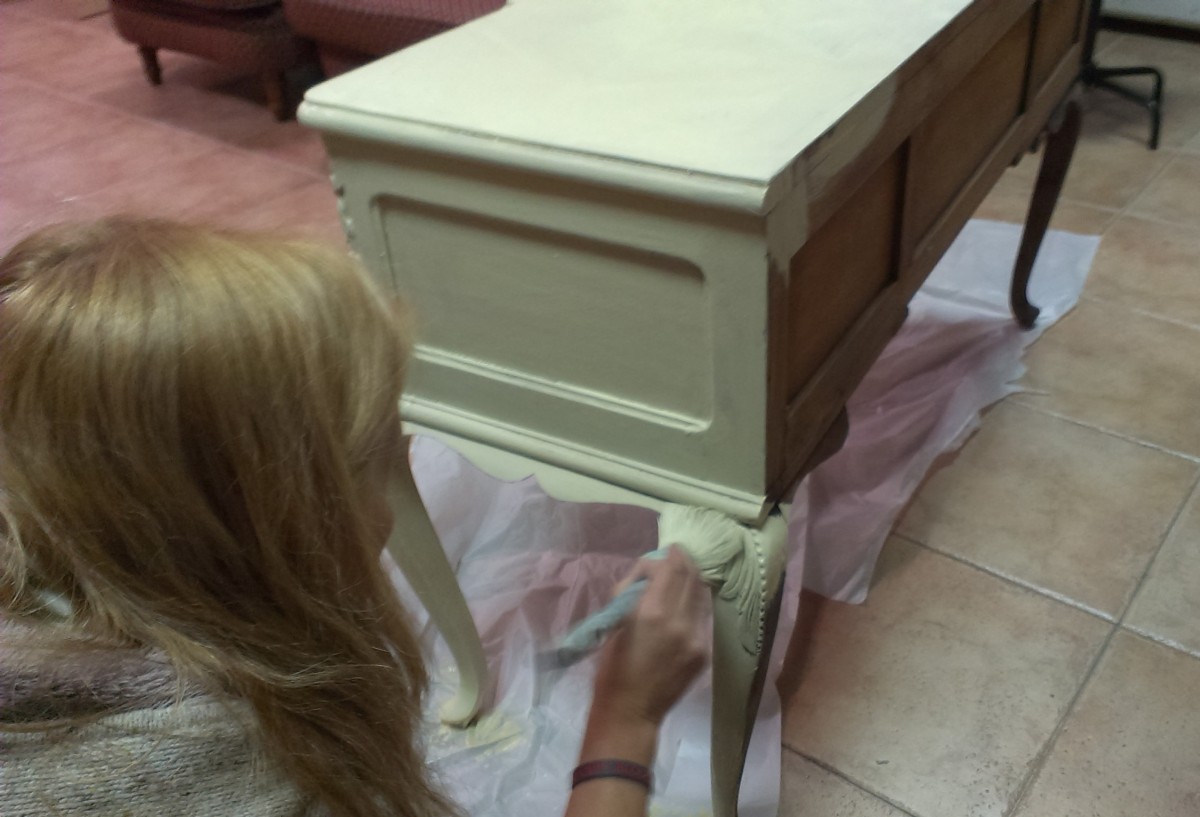 Y procedimos a pintar en tono Old Ochre de Chalk Paint.(Pintura ecofriendly). De rápido secaje y que no huele.