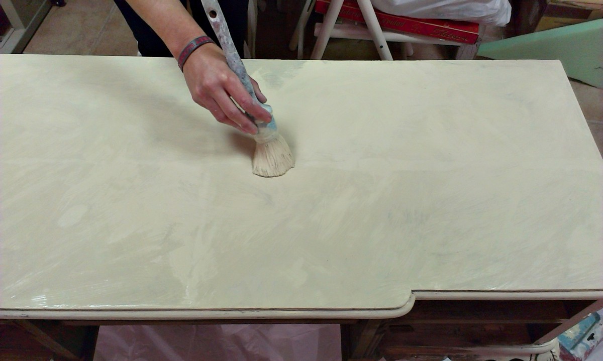 Después pintamos con la técnica de pincel seco en tono Old white.Para saber más de esta técnica aquí.