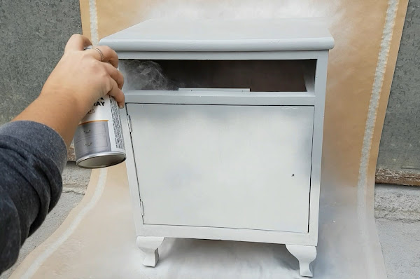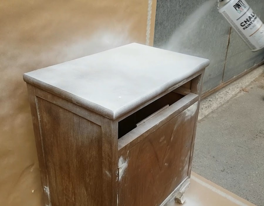 Como queríamos darle un efecto envejecido, hemos optado por utilizar un color blanco de base y un gris claro para la última capa.