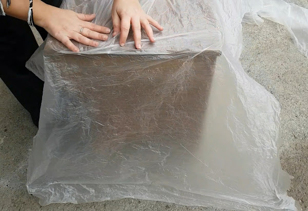 Después, le hemos quitado el polvo y le hemos pasado el anticarcoma. Este punto es necesario y OBLIGATORIO, ya que si metemos un mueble infectado en casa, se nos puede acabar infectando todo lo que haya en ella. Después para que haga efecto, lo hemos cubierto con un plástico y lo hemos dejado una semana en reposo.
