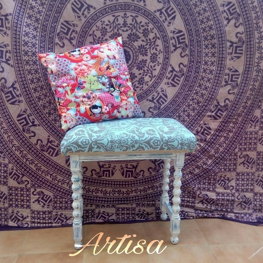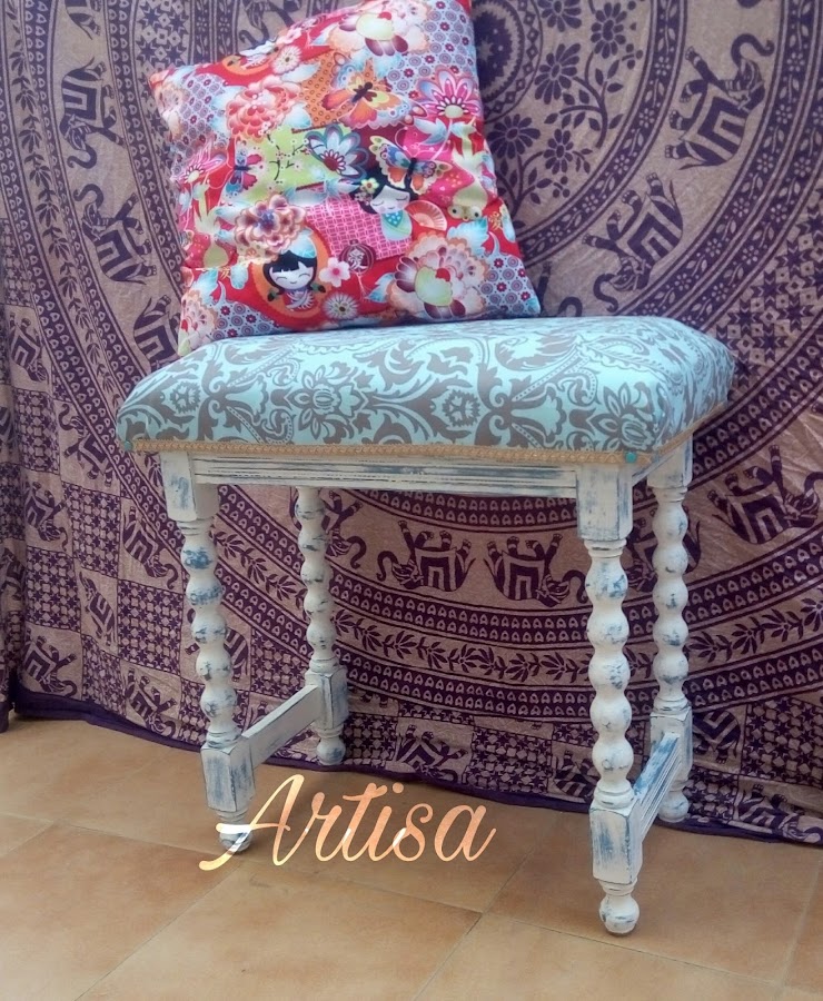 Le dí con un poco de lija, solo para que agarrara bien la pintura, que esta vez utilicé pintura a la tiza. Lleva dos manos de azul turquesa y una de blanco antiguo, lijada suave entre capa y capa, y por último otra lijada para que salga bien el azul y dos manos de cera incolora (me gusta mas el acabado que le da la cera que el barniz)