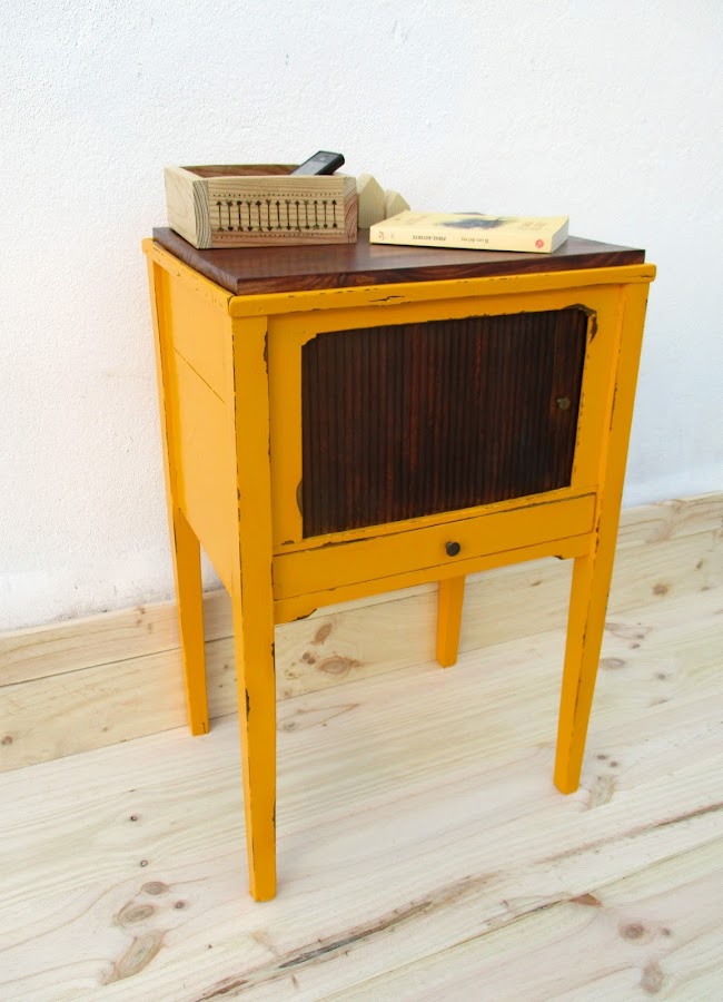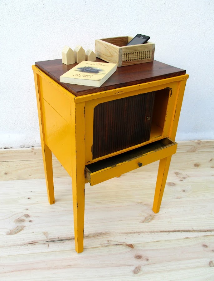 Y bueno, el resultado es el que podéis ver. Al final ha quedado algo muy chulo, con las indicaciones que quería Alicia y con aportes míos. Se ha convertido en una mesita de noche única, muy original y actual. Tú también puedes tener un mueble así en casa. Tan solo tienes que enviarme un mail con alguna imagen de tu mueble y contándome que idea te gustaría hacerle, y si no tienes ningún mueble para recuperar no te preocupes, con enviarme un mail y preguntarme que muebles tengo sin recuperar en el almacén vas por buen camino. Te enviare fotos y ya decides con cual te quedas para tu casa. Espero que os haya gustado el resultado. ¡Feliz fin de semana!