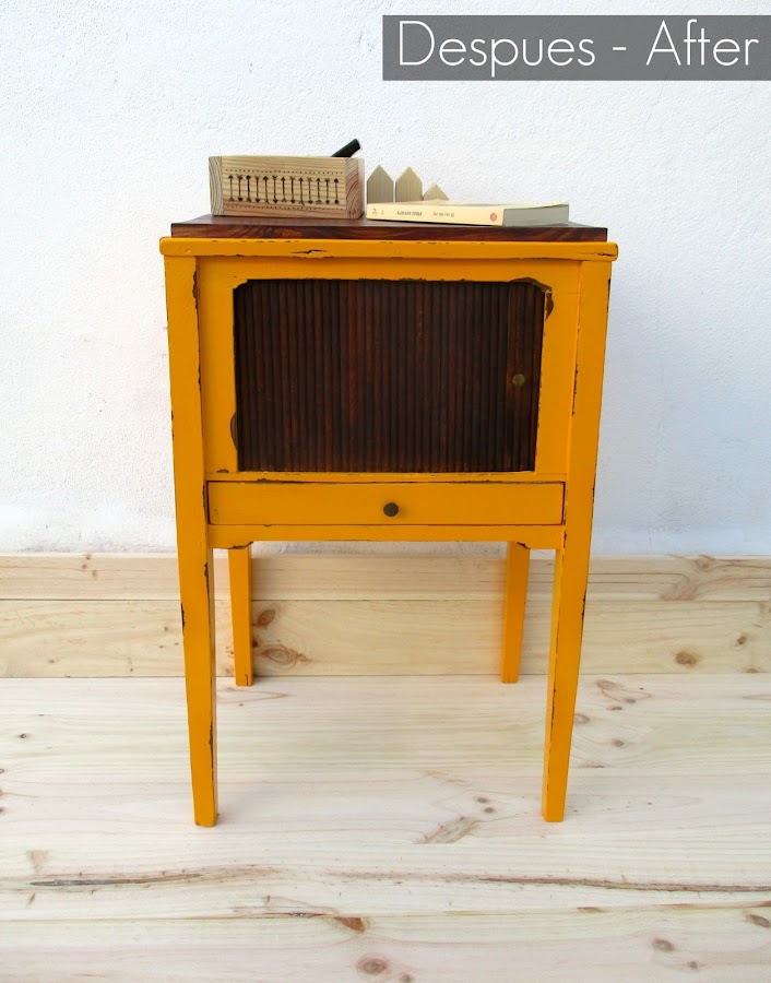 Lo que si se de esta mesita es la historia que va a tener a partir de ahora porque esta mesita se va a quedar en casa. Y no en mi casa, se va a casa de mis cuñados. Mi cuñada Alicia quería darle una sorpresa a Juan Carlos, su marido, y me pidió si podría recuperar para el alguna mesita de noche. Ella no tenía ninguna y me preguntó si tenía yo alguna en el almacén, así que le envié algunas fotos de las que tengo y finalmente se quedó con esta. Y eligió muy bien.