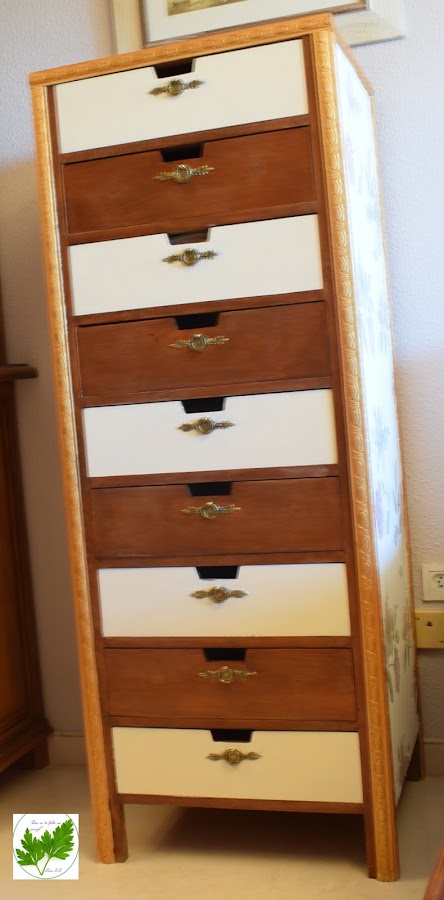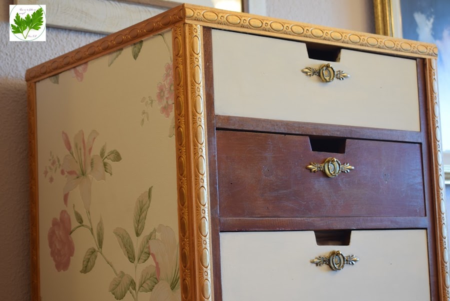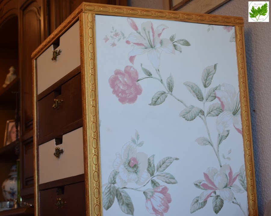 Los laterales los decoré con papel pintado muy de moda, para darle un aire nuevo y diferente.