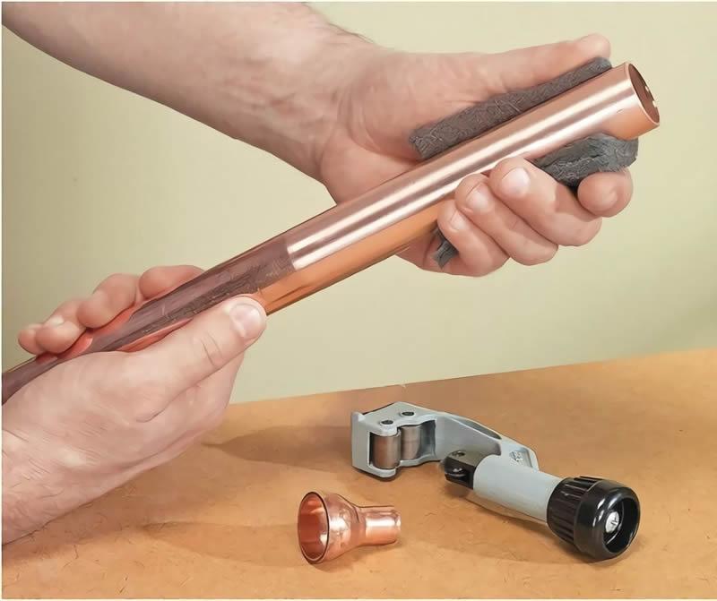 Podemos cepillar, para un acabado brillante en la tubería de cobre podemos lijar con papel de lija 180. Limpie cualquier residuo con un paño limpio.