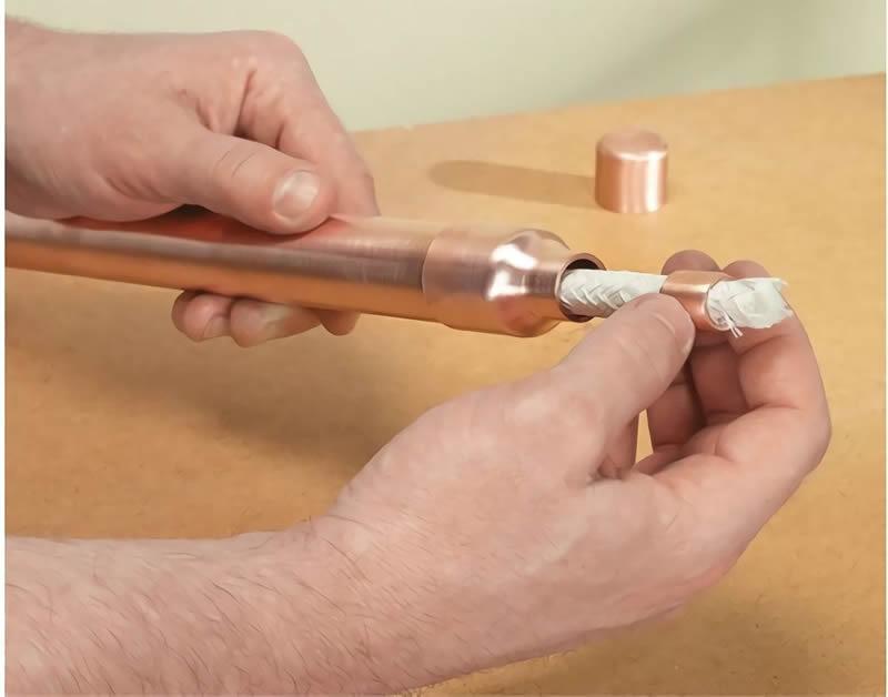 Deslice la mecha en la tubería con 1 cm expuesto.