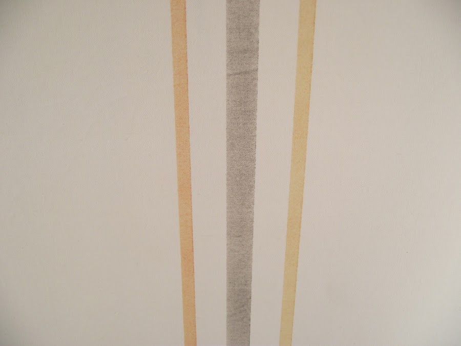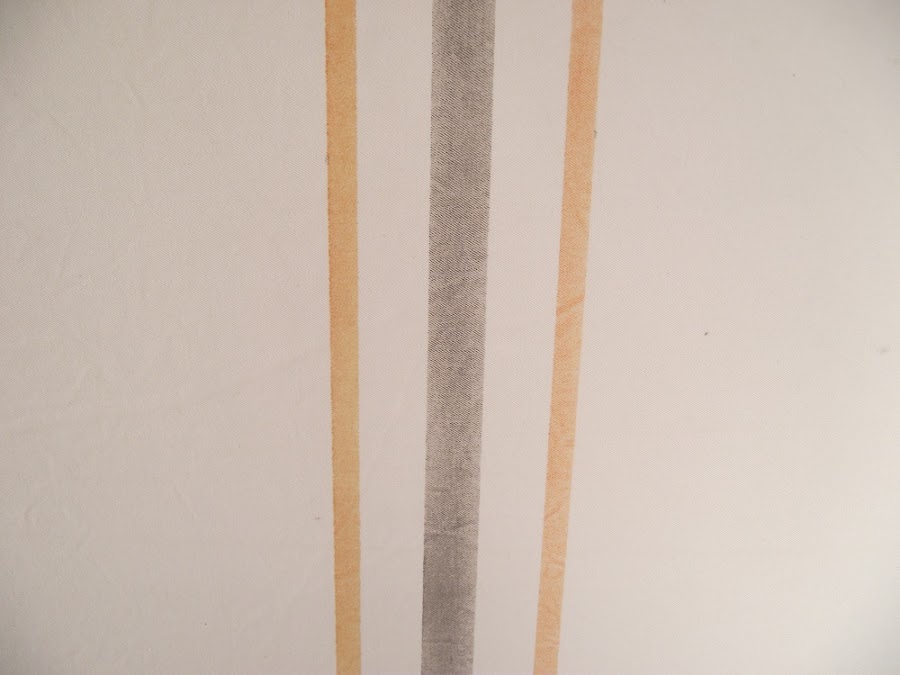 Os pongo un detalle de las líneas: gris pizarra la del centro, naranja a los lados y topo las que están en los bordes. El tono amarillo no lo usé porque quedaba excesivamente claro sobre la loneta blanca: