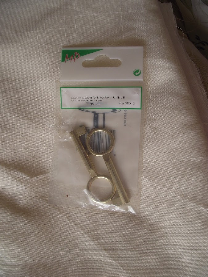 Cambié los tiradores de los cajones por unas conchas que imitan el latón envejecido, que me parecieron acordes con el aspecto industrial que quería darle. En las puertas únicamente las llaves que servirán de tiradores, ni siquiera puse llaveras, para potenciar ese aspecto de mueble funcional: