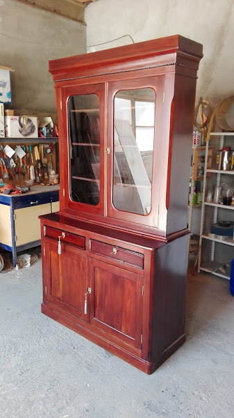 Hola a todas/os. Hoy he terminado la recuperación de esta vitrina-aparador. Se trata de mejorar su acabado sin tunear.Varios trabajos de carpintería y brico.Reemplazar piezas rotas o inexistentes. La vitrina y el aparador en estado original. Empezamos por eliminar las partes de madera de la estructura que estan rotas,deterioradas o faltan. En este caso la trasera,base de la vitrina y una de las pa ...