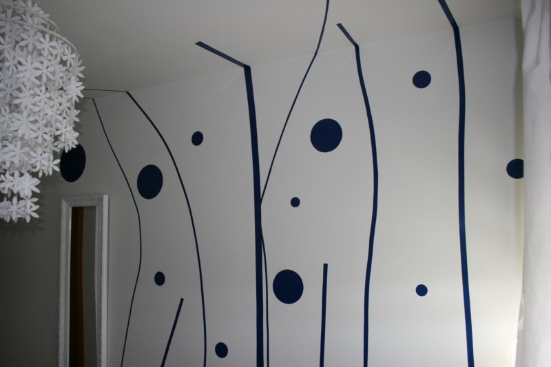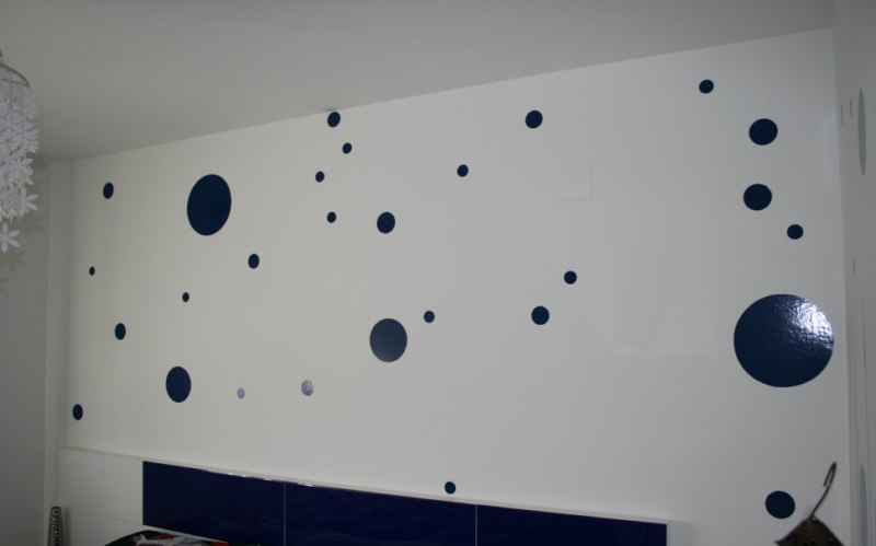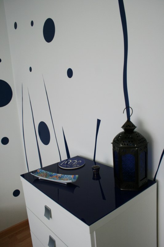 He pintado dos franjas con pintura imán. Le he dado 3 manos para que fuera más efectiva. Como la pintura imán es negra, encima de esta le he dado una par de capas de pintura pizarra azul. Así puedo p ...