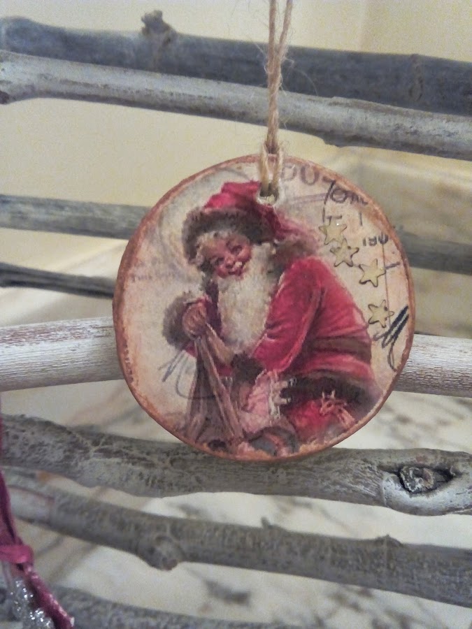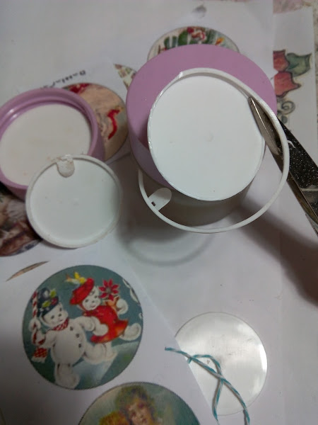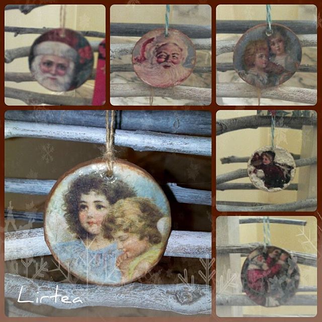 Y otro tipo de adornos que hice también con decoupage con servilletas y que están realizados con las tapas de cremas hidratantes.