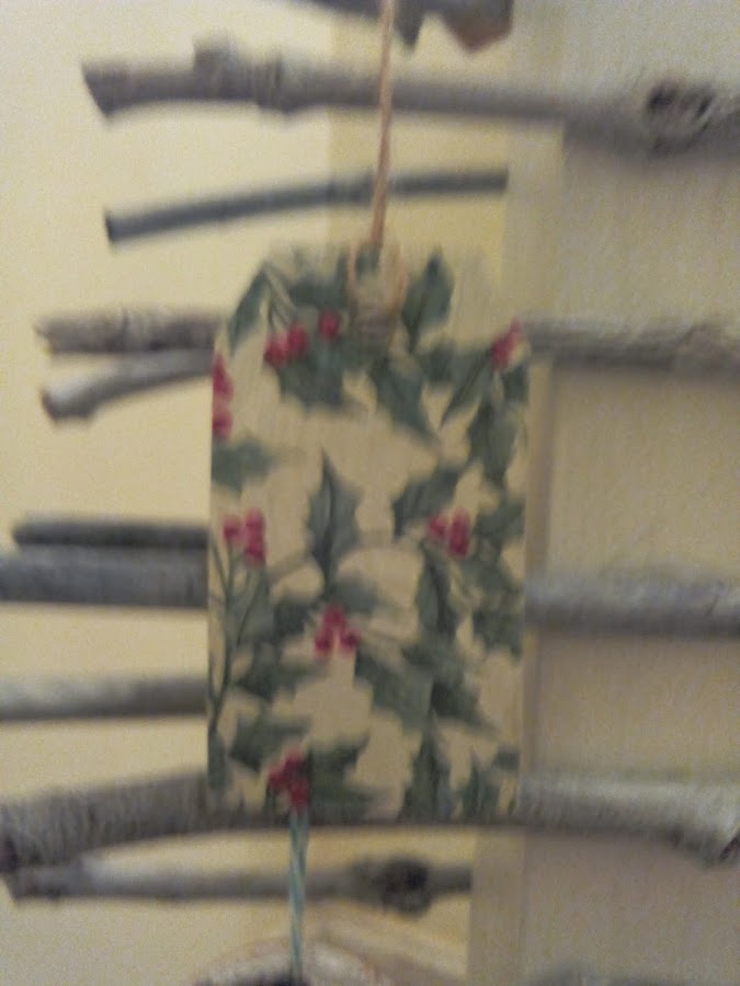 Las ramas están cortadas unos 3 cm una más corta que otras, para hacer la forma del árbol( eso dependerá de cuantas ramas pongáis, (yo puse en total 12 y lo hice doble, es decir tanto por un lado como por el otro del listón).