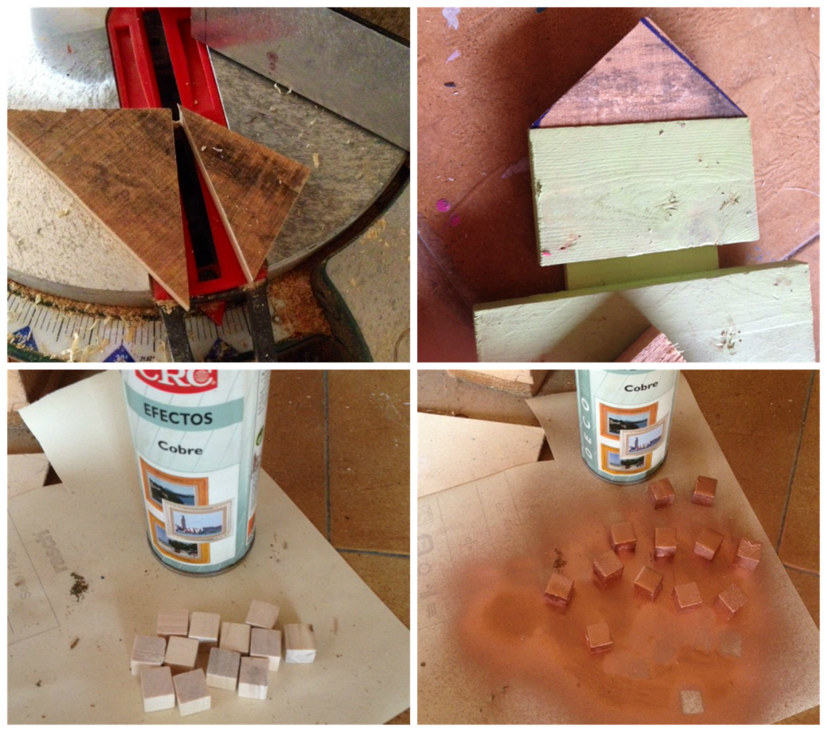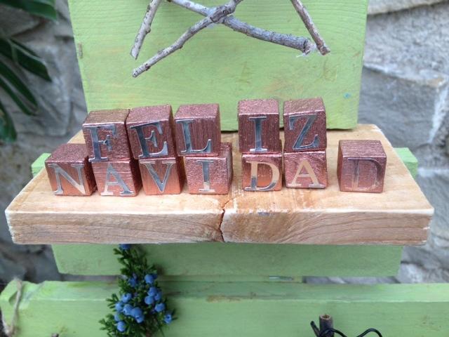 Y con unos cuantos bloques se forman letras.(se pinta con spray color cobre y se pegan letras)