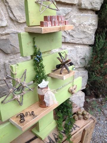 El año pasado hice este árbol , atornillando a una tablita 5 tablitas más en forma perpendicular?iba a desmontarlo o quemarlo porque ya no me gustaba?
